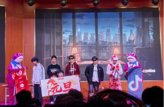 19:00,“新篇·绽放”篇章开启,文艺节目轮番登场:歌曲《大东北》《爱错》点燃氛围,独舞《彩云之南》轻盈灵动,小品《我的论文被抖音拐走了!》、《同学会》笑点与共鸣兼具,相声《上了大学之后》、舞蹈串烧《元春舞颂》、《锦舞迎春》等节目各展风采。期间穿插微信扫码抽奖、飞花令、打电话等互动环节,现场笑声与掌声交织,将晚会气氛推向高潮。