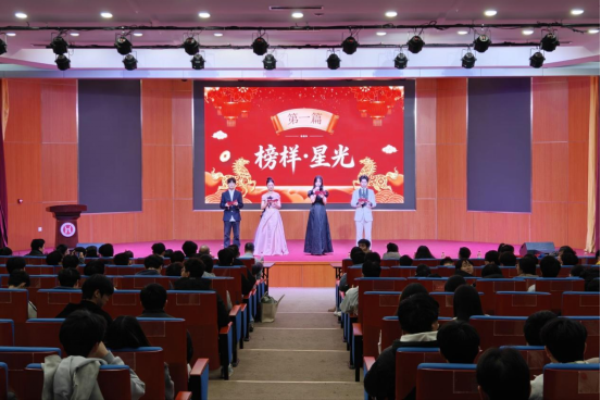 晚会分为“榜样·星光”、“新篇·绽放”两大篇章。18:30,晚会在章磊院长的致辞中拉开序幕,院长寄语学子以青春之姿奔赴新程,赢得全场热烈掌声。随后的颁奖环节紧凑有序,主持人宣读优秀军训学员名单,25级辅导员何舒茂为获奖者颁奖;团总支书记刘泽锦则为优秀学生干部奖获得者颁奖。颁奖后,毕业生代表程好分享了成长感悟,新生代表周雨霏抒发了对大学生活的憧憬,两代学子的心声传递出学院的精神传承。
